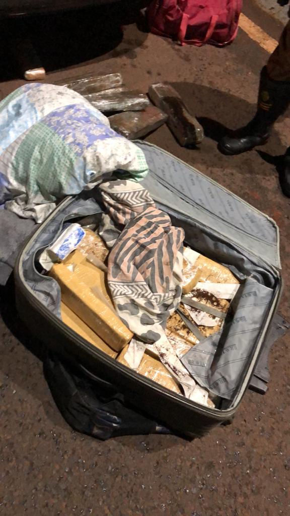 Durante Operação "lockdown" e Operação Vida realizada em conjunto entre Rotam e Prv de Peabiru, foi abordado o veículo Sandero de cor preta placas Qok-2J91, conduzido por R. S. C . Durante a fiscalização foi identificado como passageiro o menor E. M. J , ao vistoriar o porta malas do veículo foi encontrado uma mala de cor cinza e uma mochila preta com 35 kg de substância análoga a maconha , 2,515 kg de Skank e 480 gramas de Haxixe. Ao indagar o condutor do veículo o mesmo disse ser motorista de aplicativo (Uber) e que estava fazendo uma corrida para o menor de Foz para São Paulo. Indagado o menor sobre a droga o mesmo disse que era de sua propriedade e que ganharia pelo transporte a quantia de R$ 2.000,00. Ato continuo foi encontrado de posse do menor um aparelho Celular onde foi observado algumas mensagens trocadas com outra pessoa que se encontrava em outro veículo e que dizia para eles irem devagar e disse que estava vindo logo atrás em um veículo Cobalt. De imediato a equipe deslocou nas proximidades do posto Policial Rodoviário onde visualizou o Cobalt, neste momento foi realizado a abordagem do veículo Cobalt de placas OVP-4483 que era conduzido por P. S.G, tendo como passageiros sua esposa e sua filha de 2 anos e 6 meses e ainda a pessoa de J. V. U o qual se identificou como proprietário do veículo. Ao verificar o celular de J.V foi constatado que era ele quem trocava as mensagens com o menor . Sendo assim todos envolvidos os veículos e o entorpecente foram encaminhados e entregues na delegacia de polícia de Peabiru.