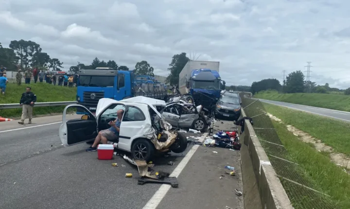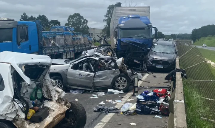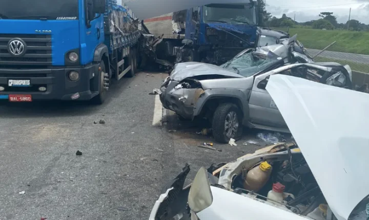 Informações iniciais indicam que o acidente ocorreu após um caminhão em alta velocidade não perceber o trânsito parado e atingir os outros seis veículos, sendo outro caminhão, uma van e quatro carros. As causas ainda serão confirmadas pela PRF.