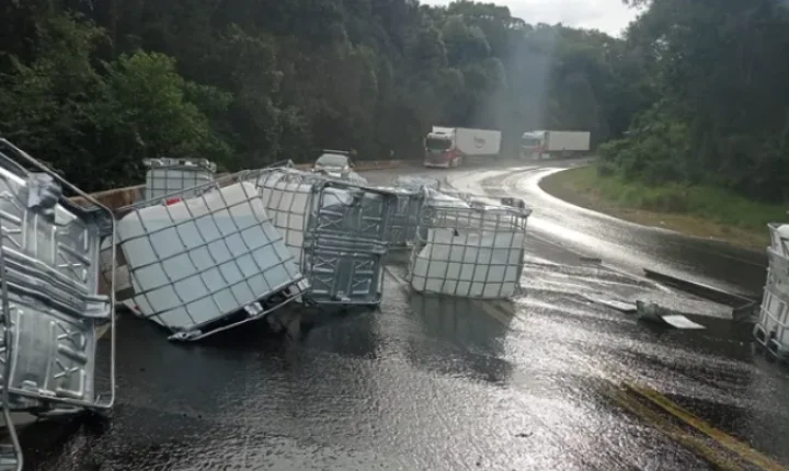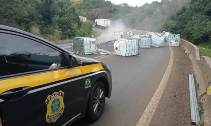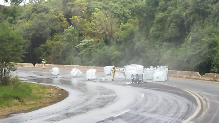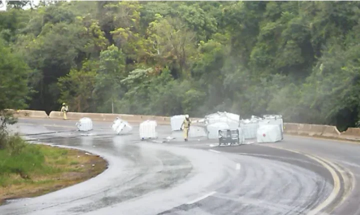 De acordo com a PRF, as bombonas com o produto foram removidas durante a madrugada, mas a pista continua suja e é necessário ainda fazer a limpeza no local.