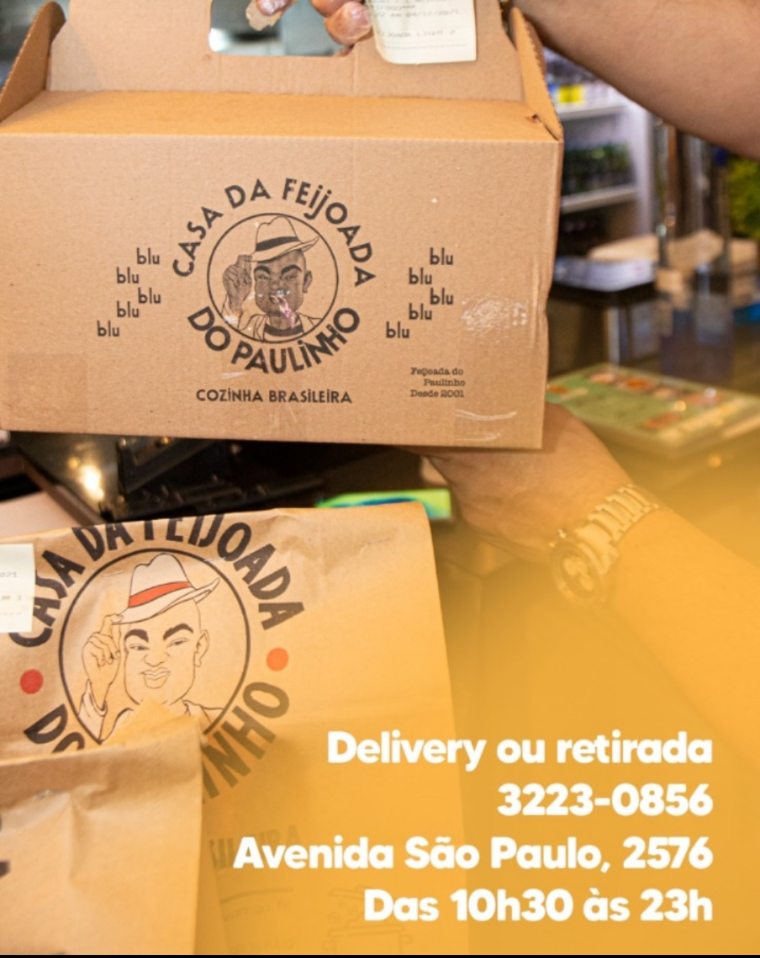 A Casa da Feijoada do Paulinho também funciona como delivery, disponível pelos aplicativos iFood, Aiqfome e pelo próprio WhatsApp do restaurante.