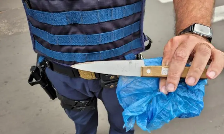 Nesta manhã de quarta-feira (12), um indivíduo foi preso com uma faca pela equipe da Guarda Civil Municipal na praça central, próximo a um colégio na Rua 7, em Rio Claro (SP).