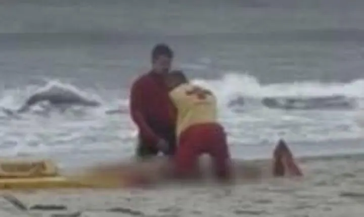 Tentativas intensas de reanimação na faixa de areia