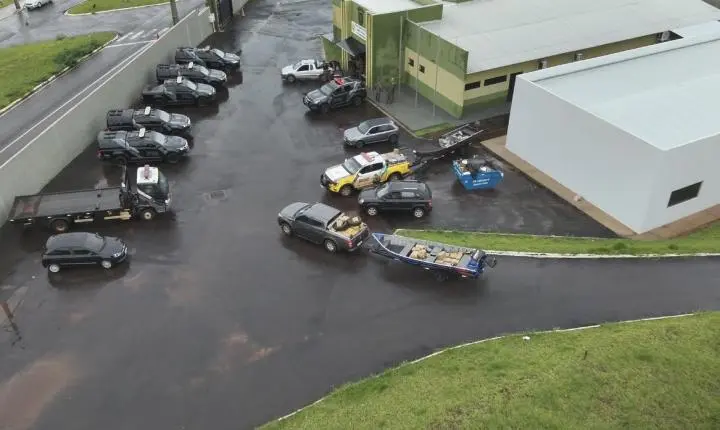 A operação também desfalcou a logística da quadrilha. Foram apreendidos três veículos utilizados no suporte ao crime (um Hyundai Tucson, um VW Gol e uma Fiat Strada), além de duas embarcações usadas na travessia ilegal pelo Rio Paraná.