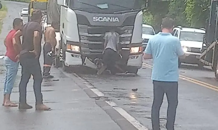 Com o impacto da batida, a moto ficou destruída e o condutor preso na estrutura da cabine da carreta. A cena chocante causou comoção em quem passava pelo local, e imagens da tragédia logo repercutiram por meio de aplicativos de mensagens.
