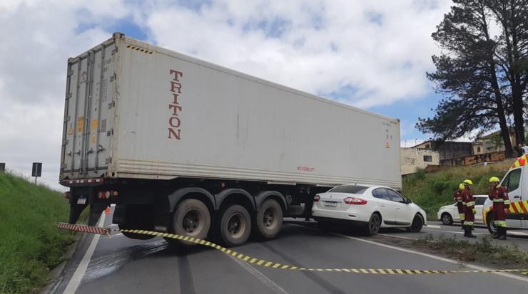 Na BR-373, o impacto envolveu duas carretas e um veículo de passeio, mas felizmente não houve feridos.