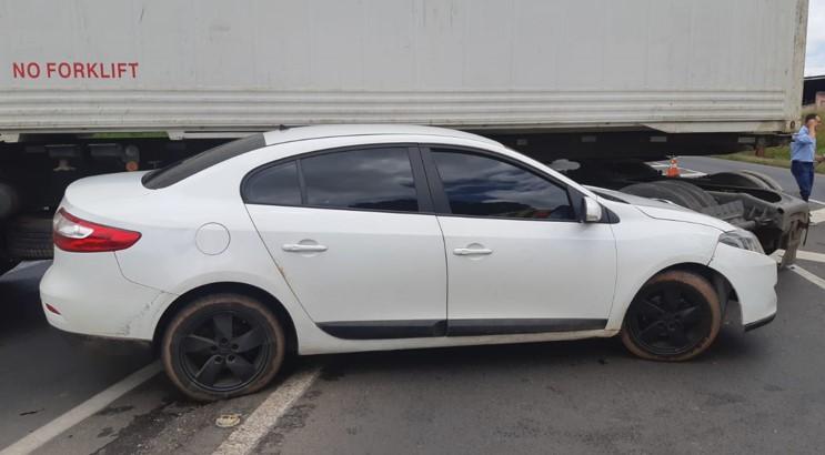 Os caminhões transportavam cargas diversas e não apresentavam irregularidades. Já o Renault Fluence, que estava na dianteira do engavetamento, levantou suspeitas assim que os agentes perceberam inconsistências nas placas.