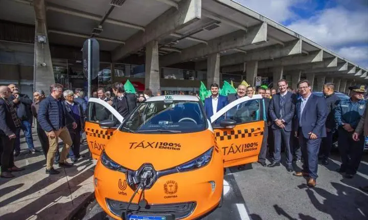 A primeira viagem de um táxi 100% elétrico em Curitiba foi feita nesta sexta-feira (16/6). O primeiro passageiro da era da eletromobilidade nos táxis foi o prefeito Rafael Greca, que saiu da Rodoferroviária, no Jardim Botânico, onde os táxis foram apresentados, e desembarcou na Prefeitura de Curitiba, no Centro Cívico.