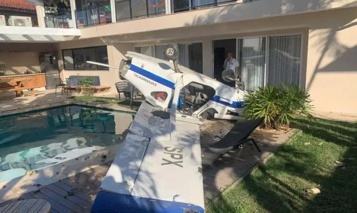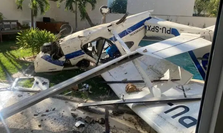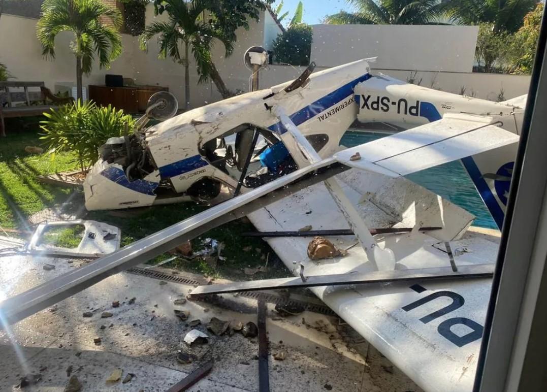 A aeronave com prefixo PU-SPX caiu em uma área gramada perto da piscina da casa, após bater e destruir parte do telhado, como mostram imagens aéreas feitas pelo Globocop. O ultraleve parou de cabeça para baixo.