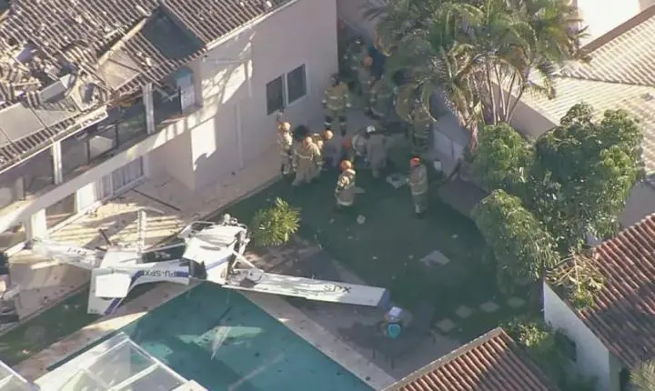 Um ultraleve caiu sobre uma casa em um condomínio na Barra da Tijuca, na Zona Oeste do Rio, na tarde desta segunda-feira (15). As duas pessoas que estavam a bordo, incluindo o piloto, ficaram feridas.