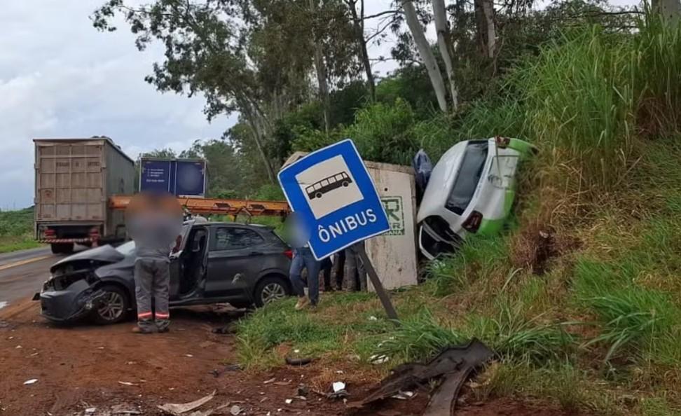 Segundo a PRE, o acidente foi provocado por um veículo que tentou cruzar a rodovia, causando a colisão.
