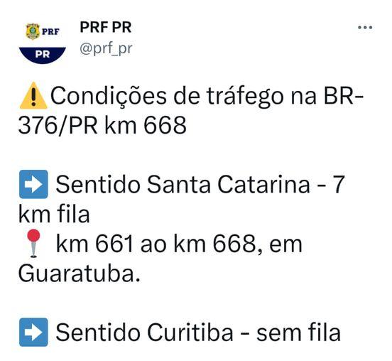 Apesar disso, veículos que viajam sentido SC estão sendo parados antes, no km 662, em um bloqueio de segurança no posto da PRF.