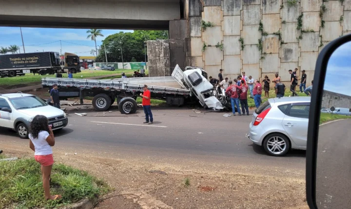 Notícia em andamento: Agora pela manha um caminhão acabou despencando do viaduto do contorno norte de Maringá na BR-376 na saída para Iguatemi.