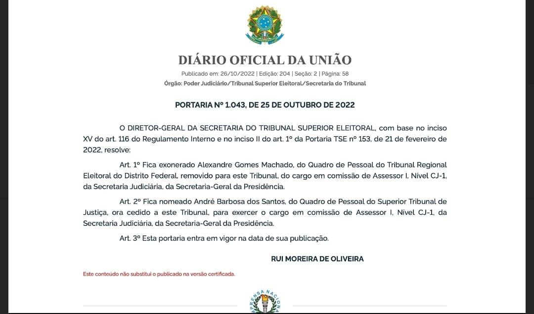 Após a denúncia feita pela campanha do presidente Jair Bolsonaro sobre o número de inserções nas rádios ser menor do que os de seu opositor Lula (PT), o Tribunal Superior Eleitoral exonerou o servidor Alexandre Gomes Machado, assessor de gabinete da Secretaria Judiciária da Secretaria-Geral da Presidência.
