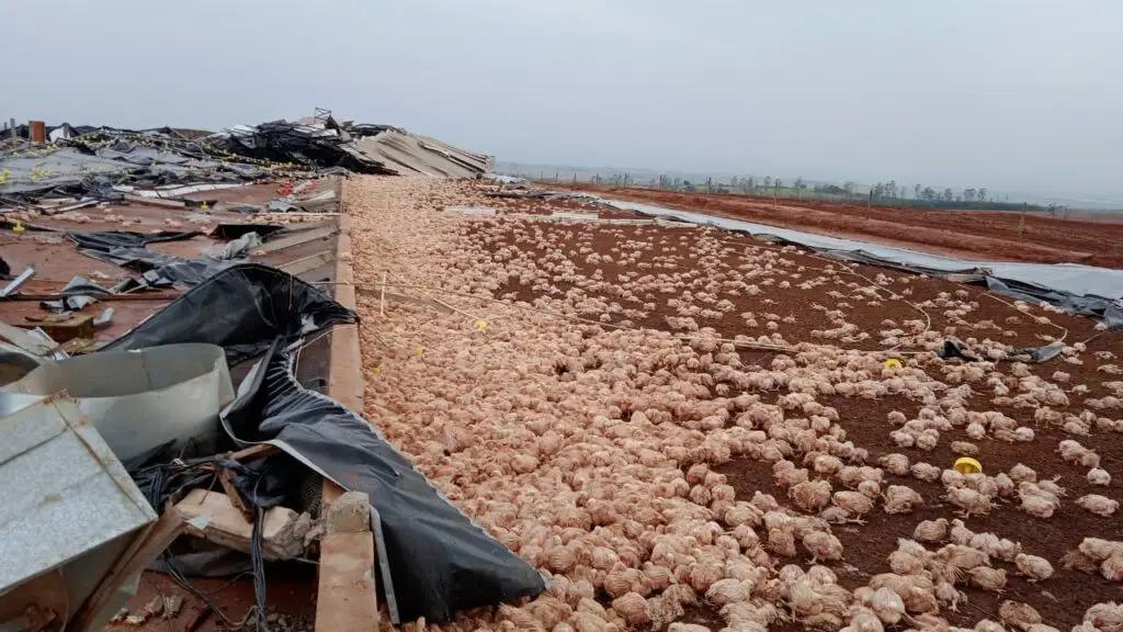 Em Terra Roxa, o chão ficou branco de gelo. E não era de qualquer tamanho. Lavouras inteiras de soja foram completamente destruídas. O mesmo aconteceu em Palotina. Ainda no oeste do Estado, aviários desabaram e milhares de frangos morreram.